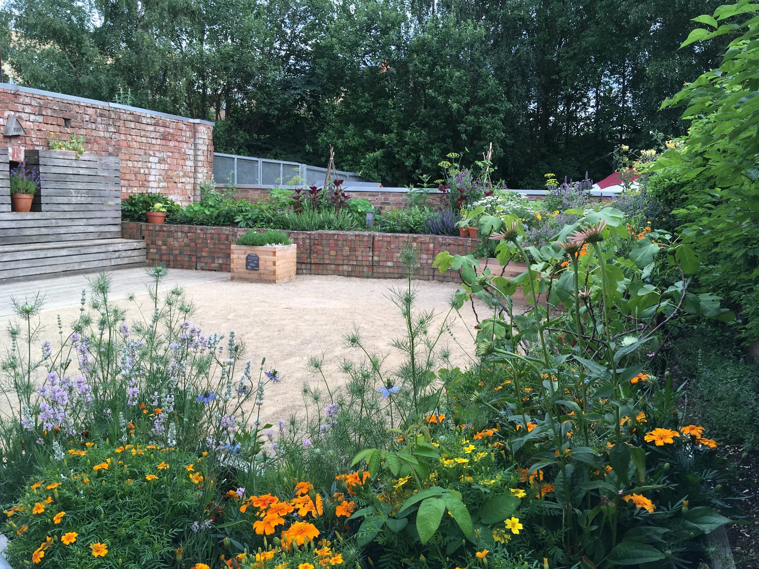 A sanctuary garden in Glasgow with a medicinal courtyard, potager, mint border and a herb border.